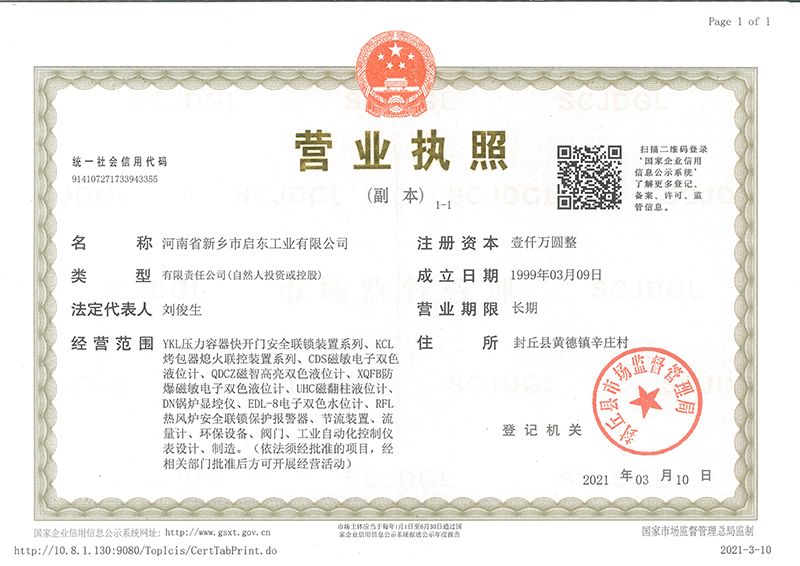 河南省新鄉市啟東工業有限公司始建于1987年,是專注研發、生產自動化儀器儀表(主要與壓力容器、鍋爐等容器配套使用)的廠家。主要產品有液位計(磁敏雙色型、磁翻柱型等)系列、烤包器熄火聯控裝置系列、壓力容器快開門安全聯鎖保護裝置系列、鍋爐報警器系列。二十多年來,公司產品暢銷國內并遠銷俄羅斯、蒙古與東南亞,深得廣大用戶的信賴和好評。我們多年來致力于自動化儀器儀表的研制生產,公司現具有完善的生產、試驗、檢測手段和設備??萍紕撔?、誠信服務,是我們不變的經營理念,我們將以強有力的技術支持及售后竭誠為客戶提供良好的服務?! ?012年我公司成功研發了KCL系列烤包器熄火聯控裝置,并于2013年2月2日榮獲中華人民共和國國家知識產權局辦法的《實用新型**證書》<**號:2021202257735>該產品廣泛應用于唐鋼等大型鋼鐵企業,為烤包器安全作業提供了有力的保障。  2002年我公司成功研發磁敏電子雙色液位計獨特的高亮度LED紅綠雙色顯示,獲得了專家的首肯和用戶的一致好評。在此基礎上我公司研發人員十年磨一劍,致力于XQFB-1防爆型磁敏雙色液位計的研發,于2013年12月27日由國家防爆電器產品質量監督檢驗中心檢驗合格并頒發防爆合格證書<編號:cnex19.0883>。該產品性能得到了充分的發揮,廣泛應用于含有Ⅱ類A·B級T1-T4組可燃氣體或蒸汽與空氣混合形成的爆炸性混合物的0區、1區危險場所。連接用戶DCS或PLC系統實現遠距離集中顯示和控制,從而實現節能、數字化管理。為用戶增加了一定的經濟效益和社會效益,。2014年公司成功申請了夢潤儀表的logo,新的品牌新的形象,夢潤儀表是啟東的LOGO, 歡迎新老用戶前來洽談合作?! ∥覀円蝗缂韧刈⒅乜蒲械耐度耄瑧{借產品的不斷更新、加大科技含量,進一步拓展市場。我們相信品質成就未來,以過硬質量、優惠價格、完善的售后服務熱忱歡迎廣大客戶來我司視察指導、洽談業務;精誠合作,共創輝煌!